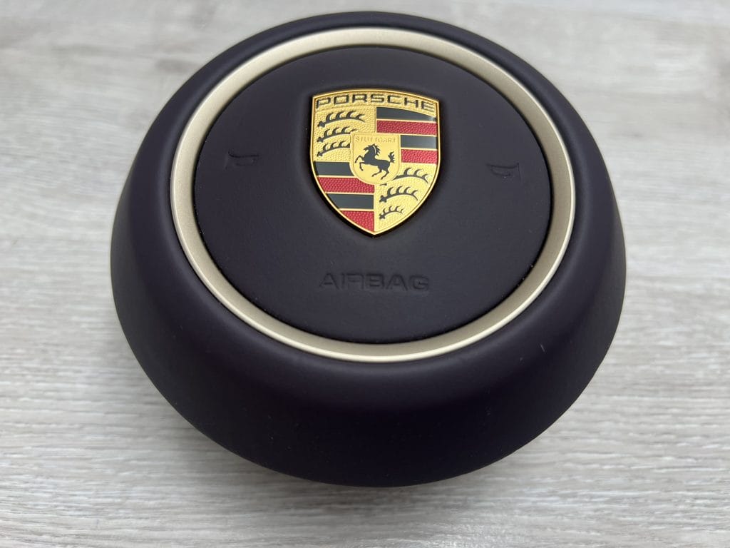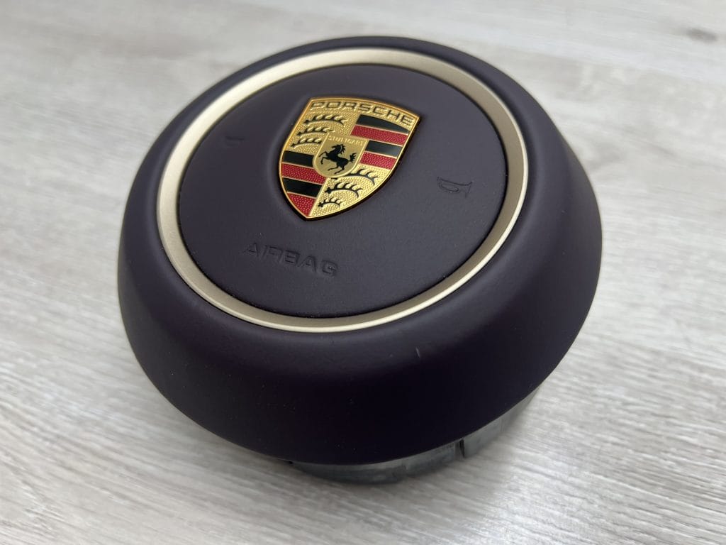 Skórzana, burgundowa poduszka kierowcy z złotym ringiem Porsche Macan 62951226 D00