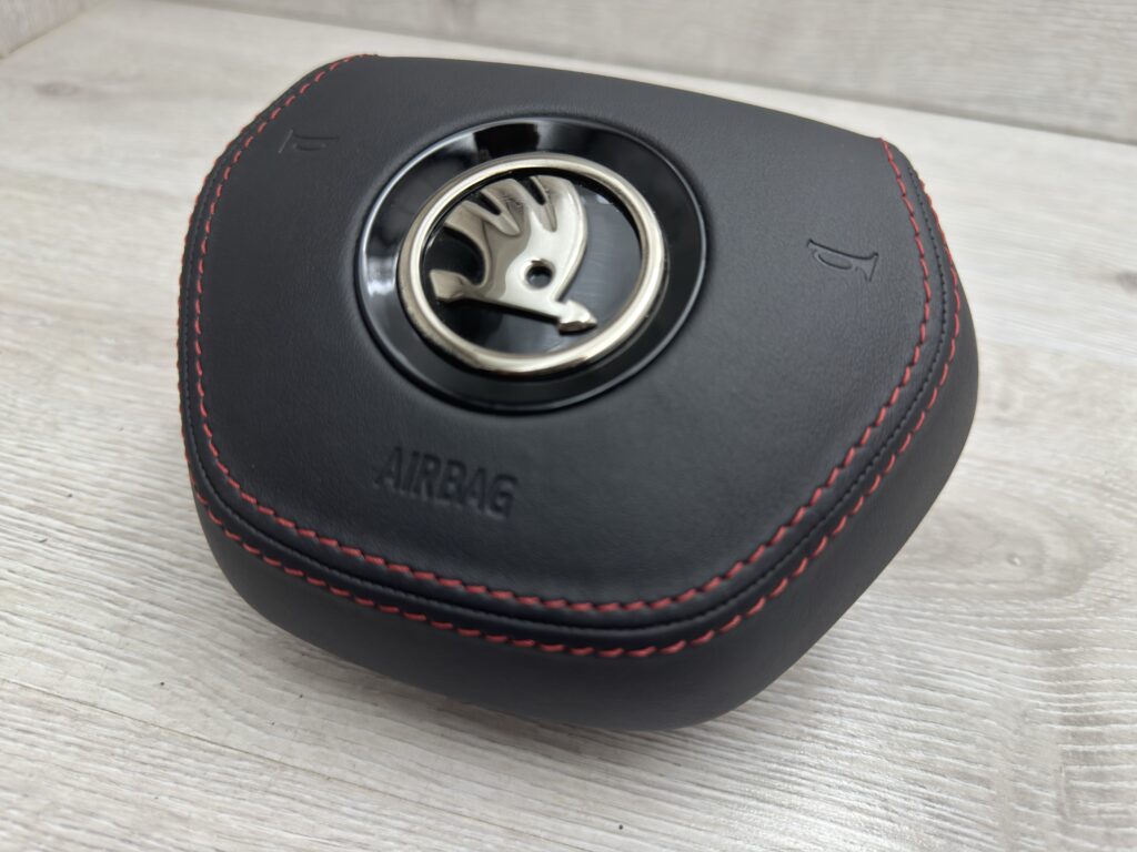 Skórzana poduszka kierowcy z czerwonymi szwami Skoda Enyaq 5LA880201B