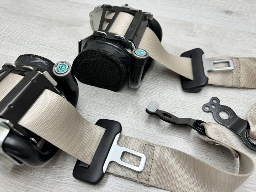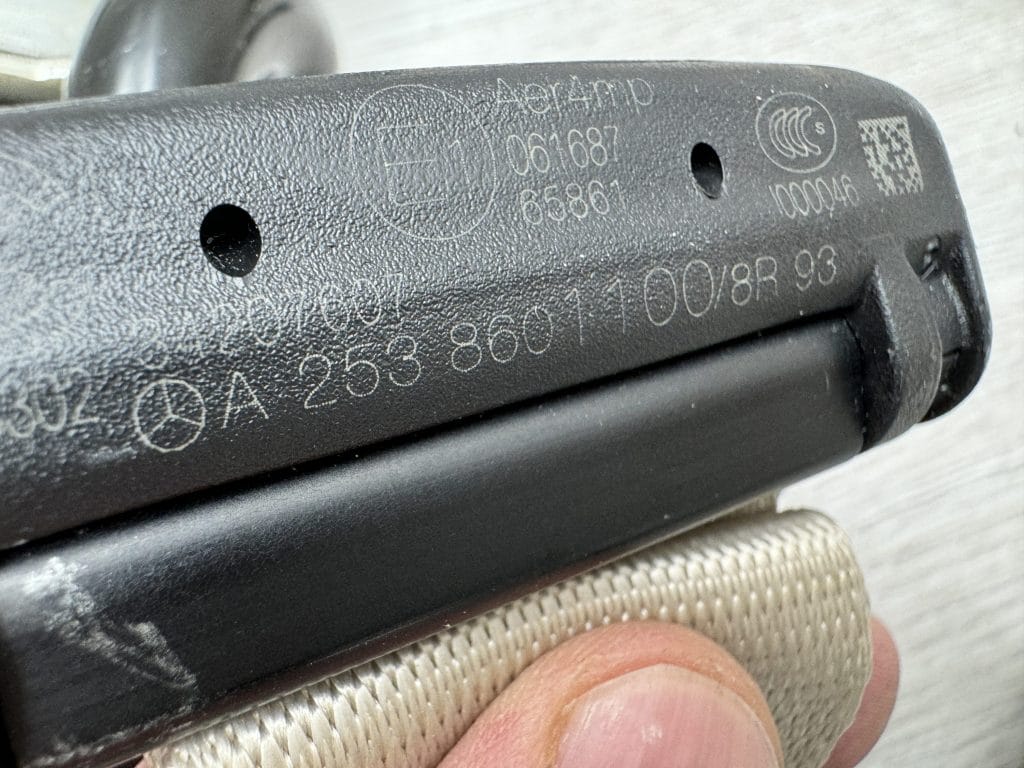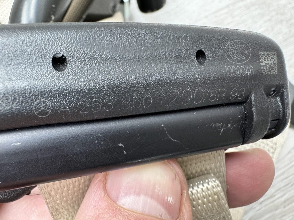 Tylne pasy bezpieczeństwa z beżowymi taśmami Mercedes 253 NAPRAWA